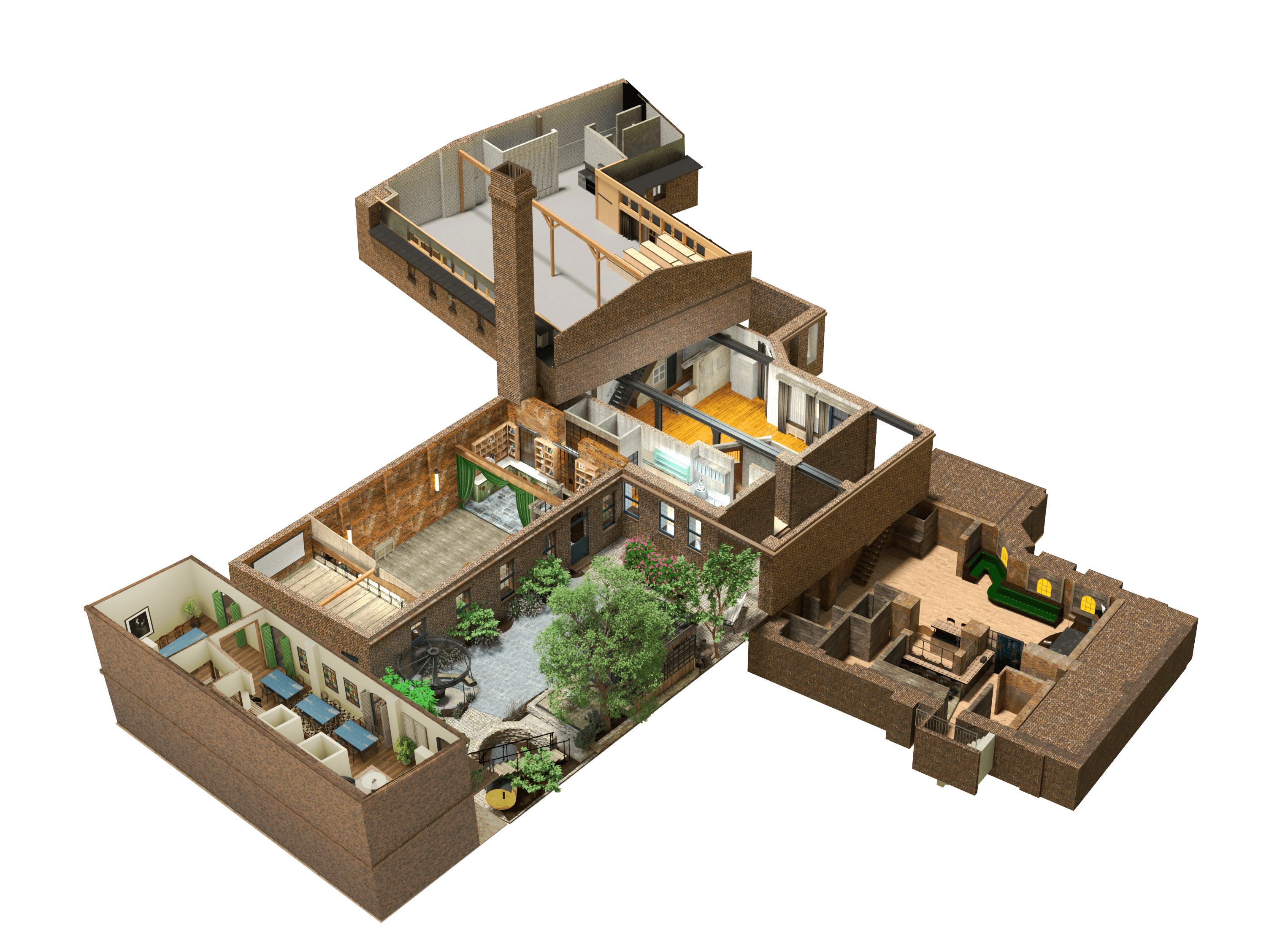 1.000 m² Hinterhof-Ensemble mit Garten in zentraler Lage auf drei Etagen mit fünf ganz unterschiedlichen Räumen